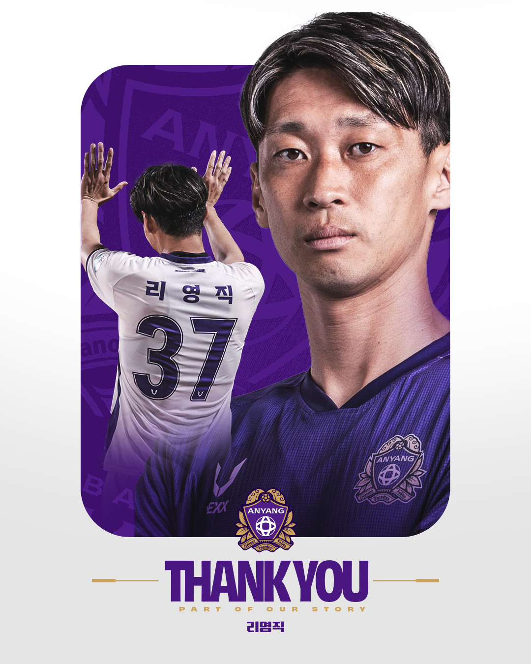 ![]()   - Thank you -   2025시즌을 마지막으로 FC안양과 미드필더 리영직의 동행이 마무리됩니다.   리영직 선수는 2024년 FC안양에 합류해 K리그2 우승과 K리그1 잔류라는 값진 성과를 이루는 데 매우 중요한 역할을 해냈습니다. 치열했던 두 시즌 동안 팀을 위해 헌신해준 리영직 선수에게 깊은 감사를 전합니다. 앞으로의 새로운 길을 FC안양이 함께 응원하겠습니다. |