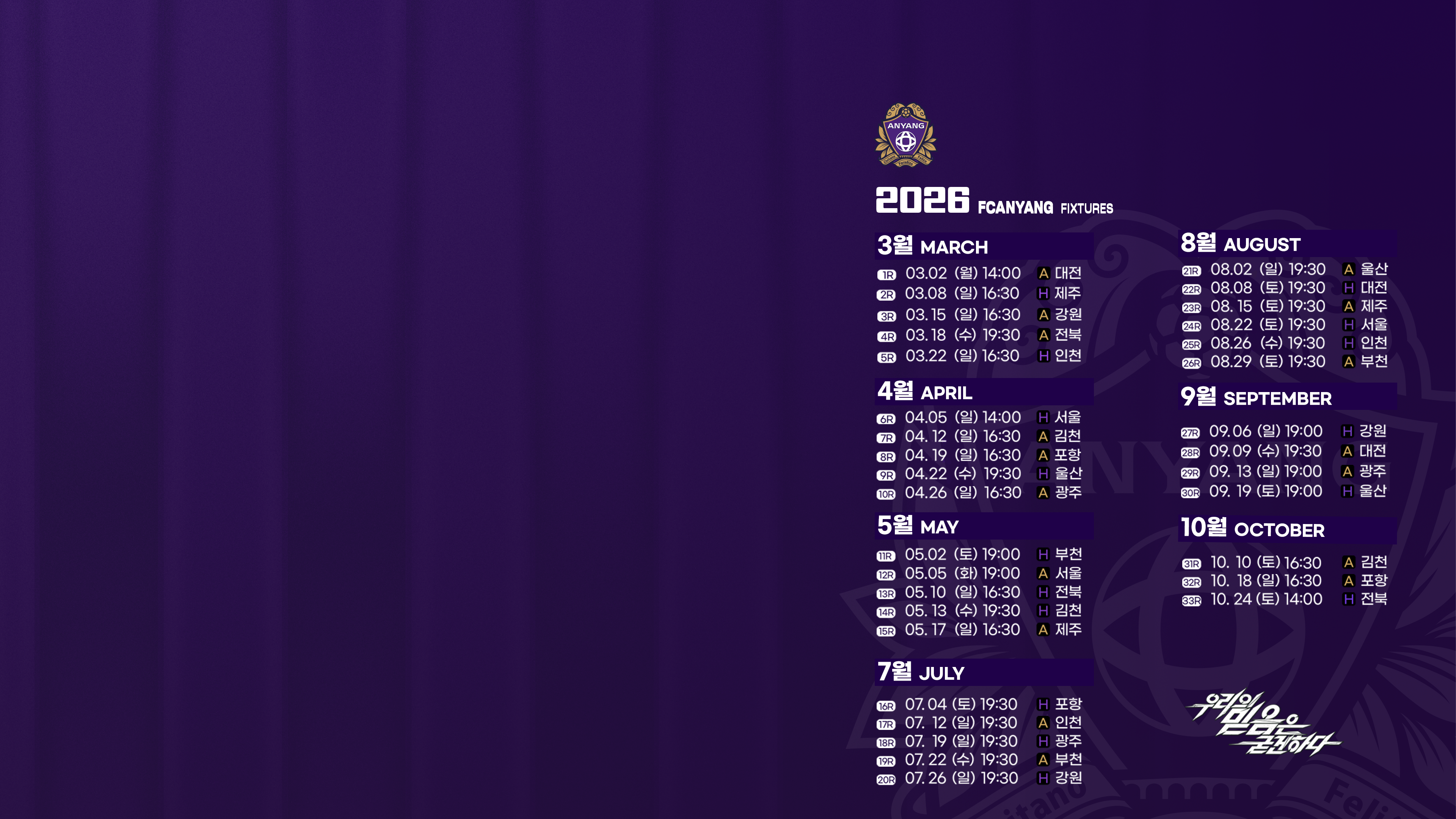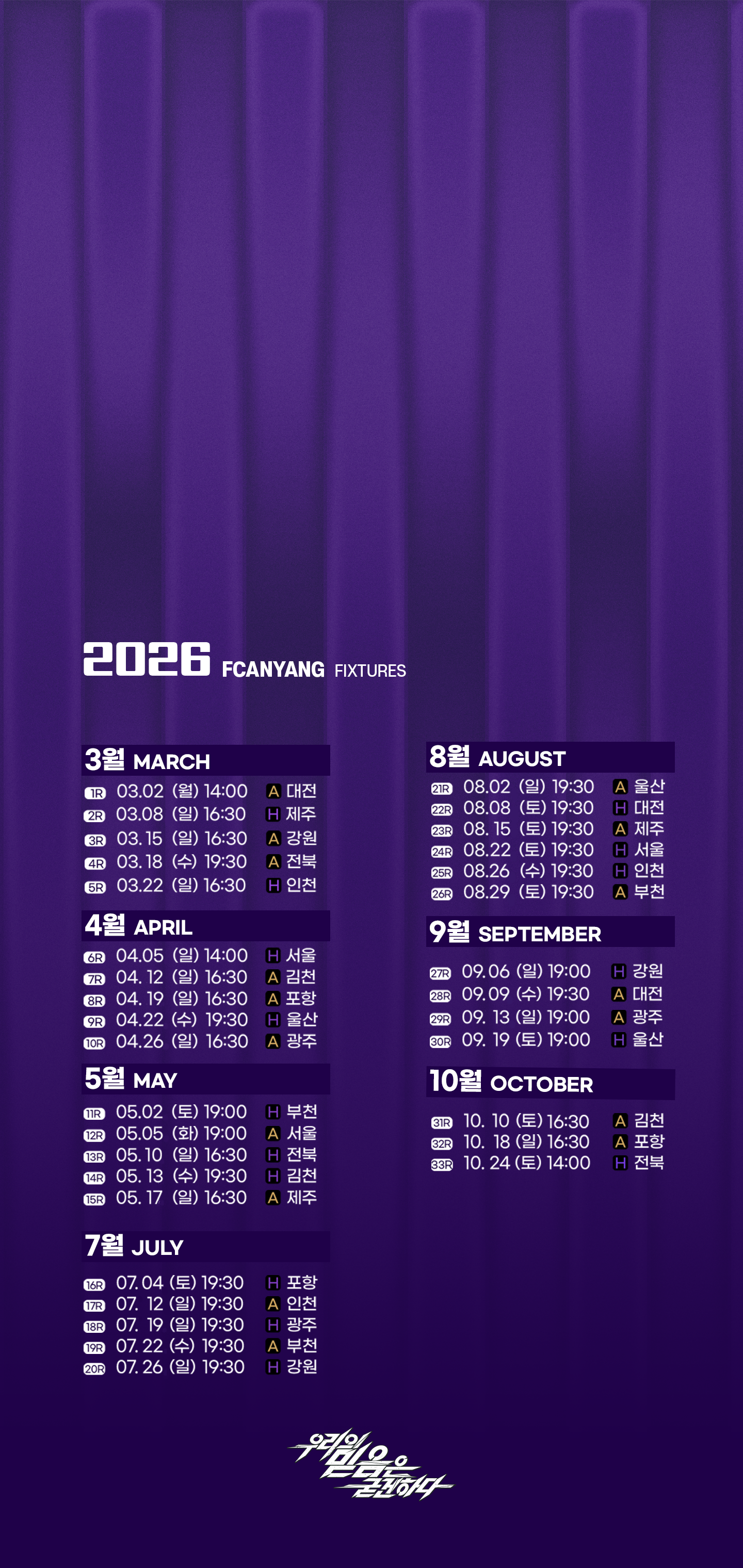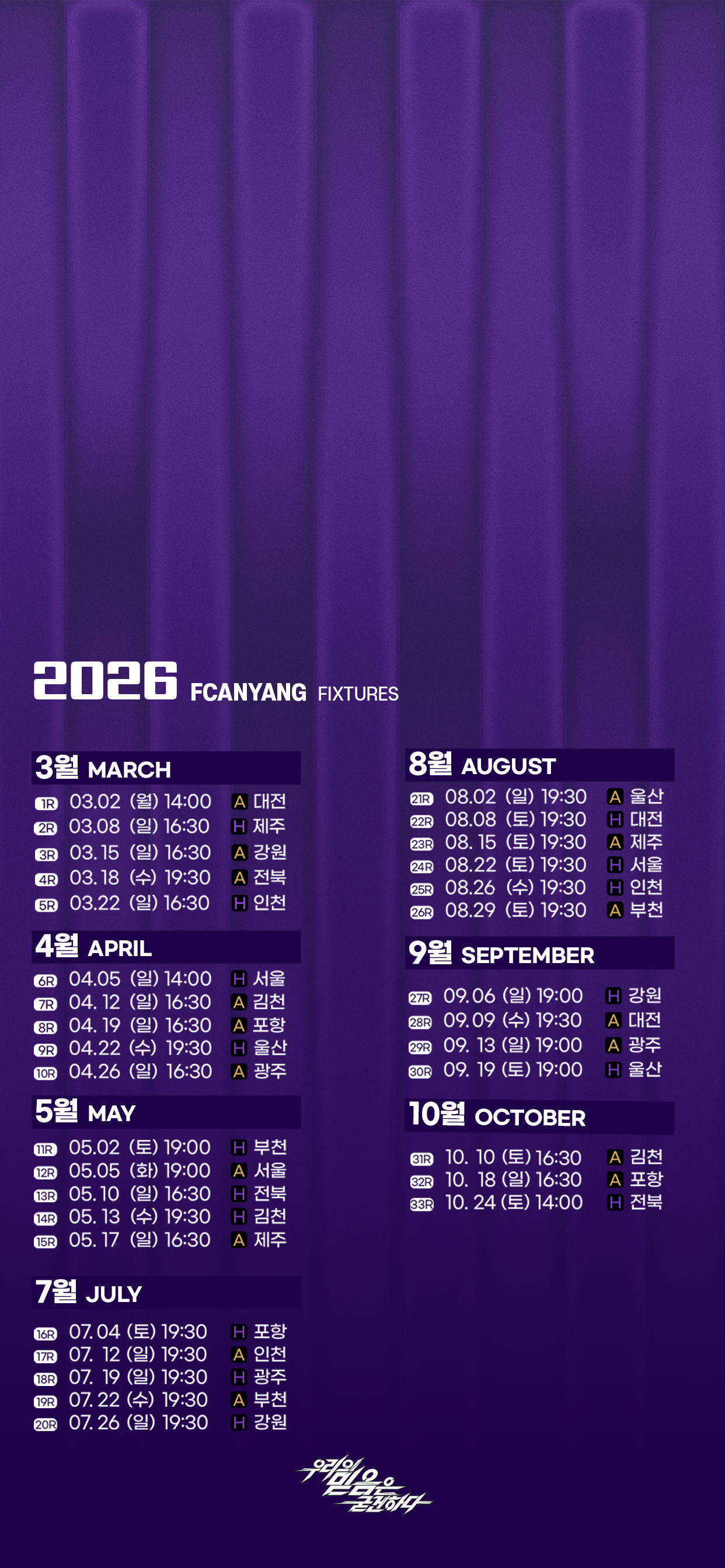 ![]() ![]() ![]()   2026시즌 FC안양 경기일정 갤럭시 배경화면용(1440X3040) 2026시즌 FC안양 경기일정 아이폰 배경화면용(1242X2688) 2026시즌 FC안양 경기일정 컴퓨터 배경화면용(3840X2160) |